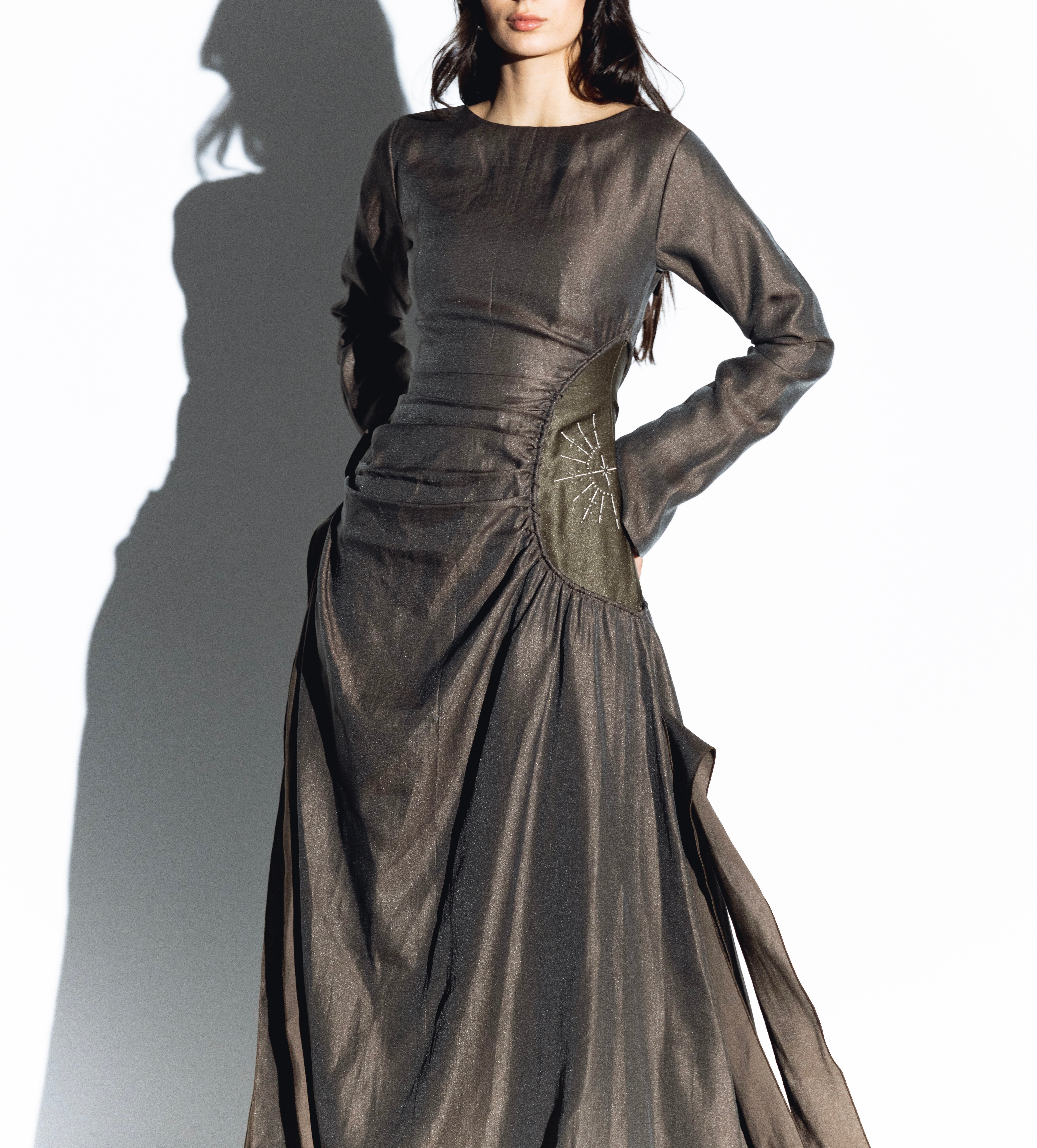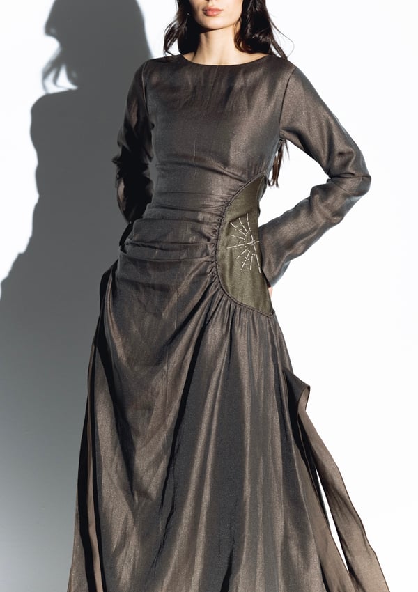 •Waist Detail: Round scrunched design across one side of the waist, highlighting the light olive patch.