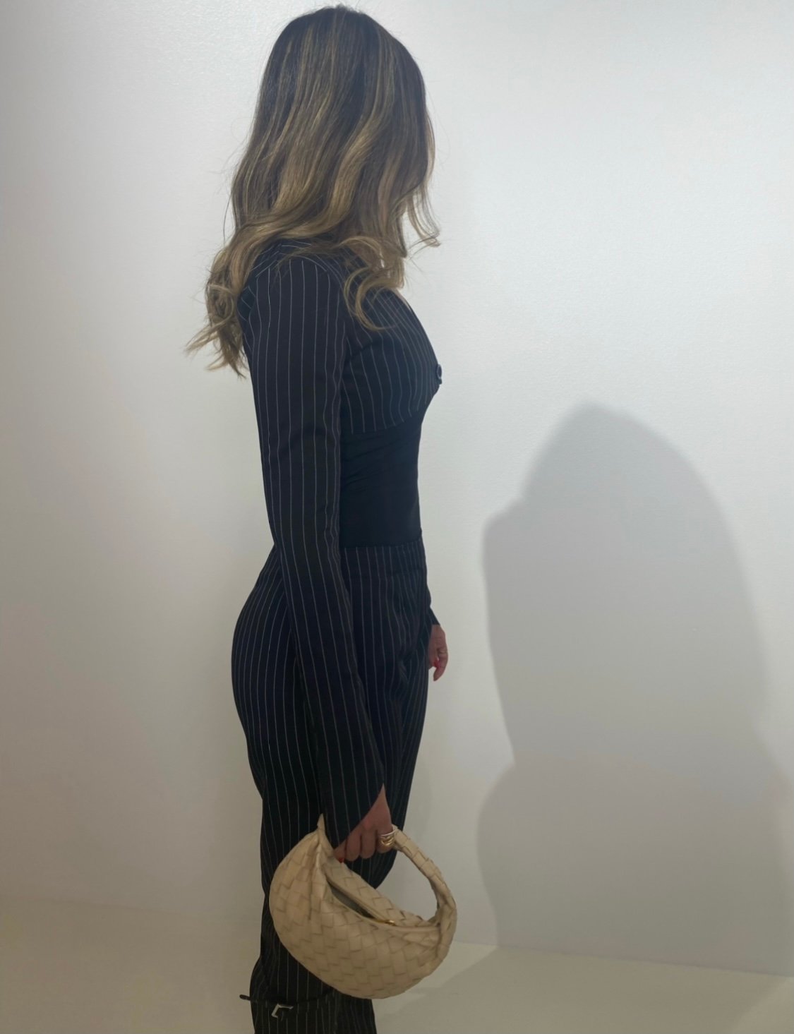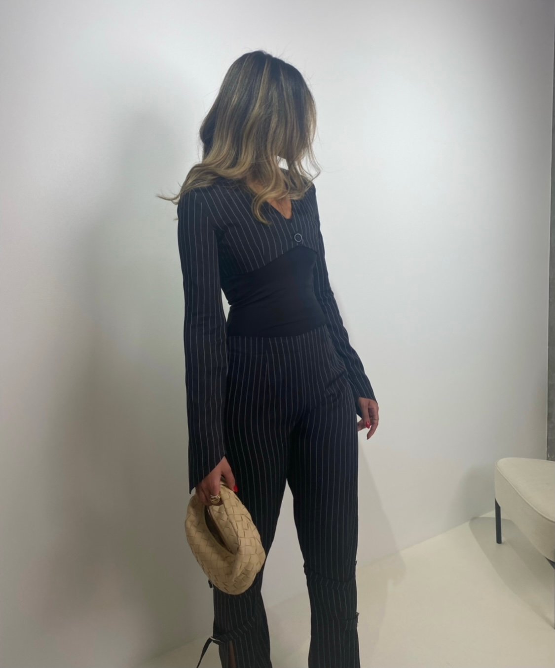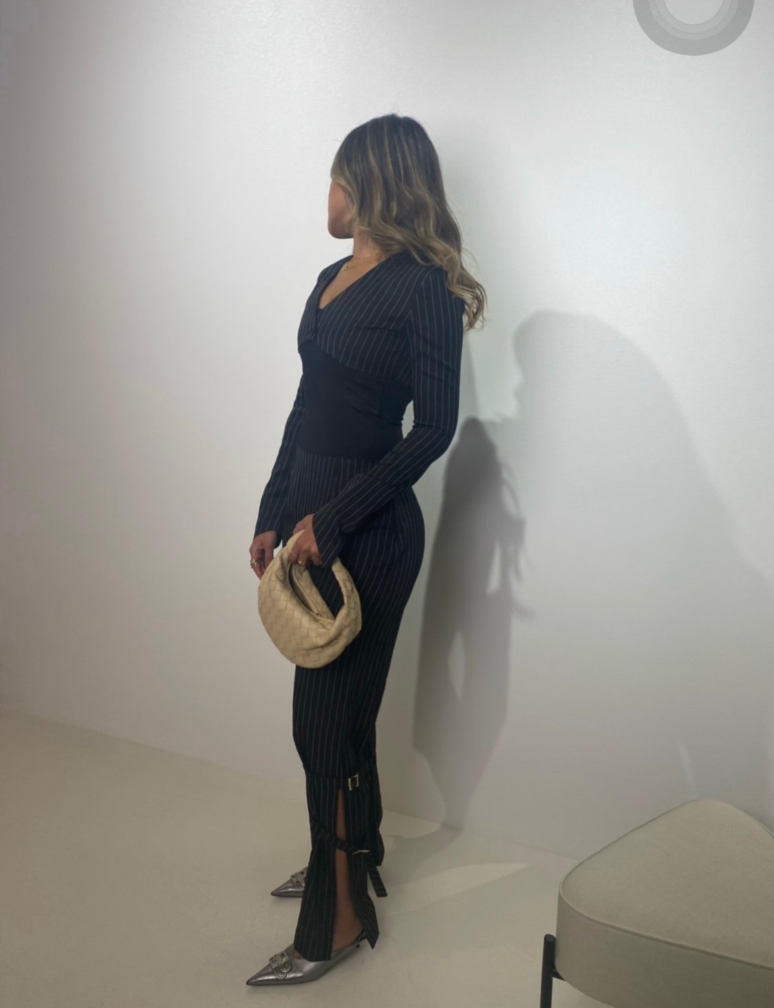 Work-fits I set is a two piece set comes with a crop blazer and buckled pants.