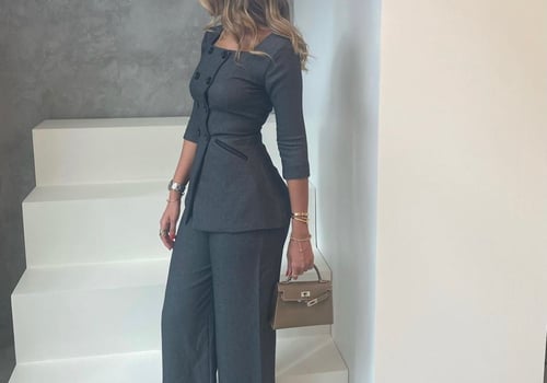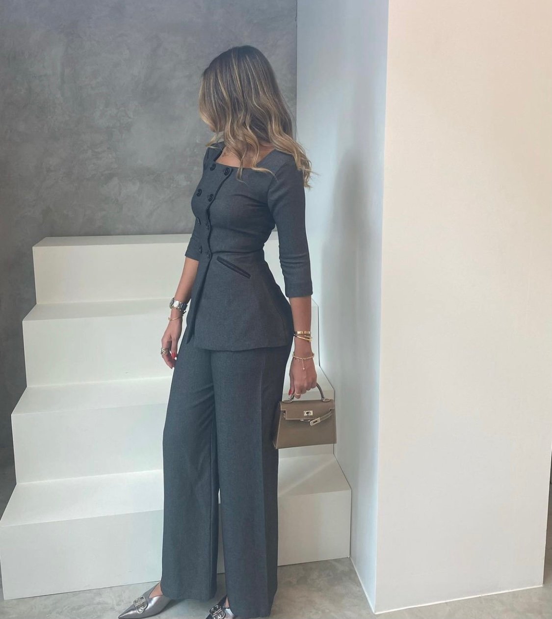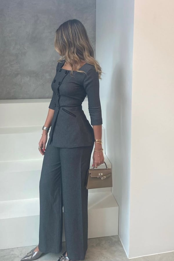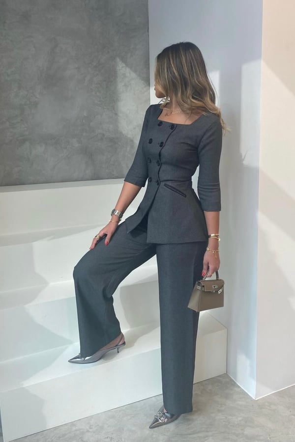 Work-fits III set is a two piece set comes with a squared button-up blazer and pants.