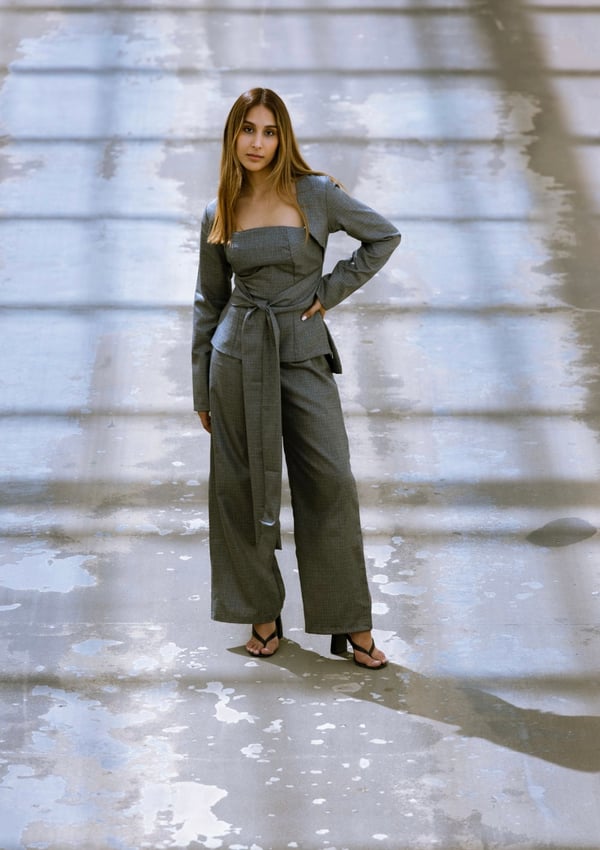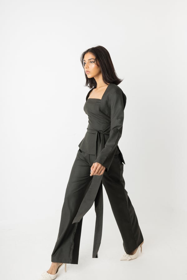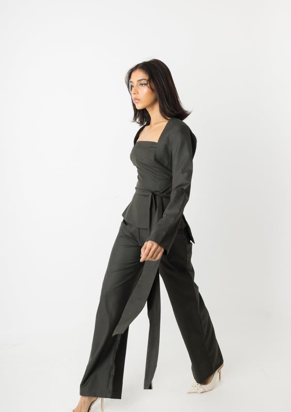 Work-fits IV is a three piece set comes with a strapless top, front tie blazer and pants.