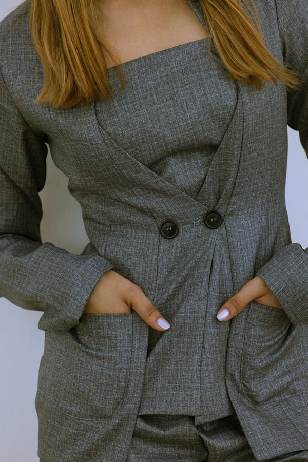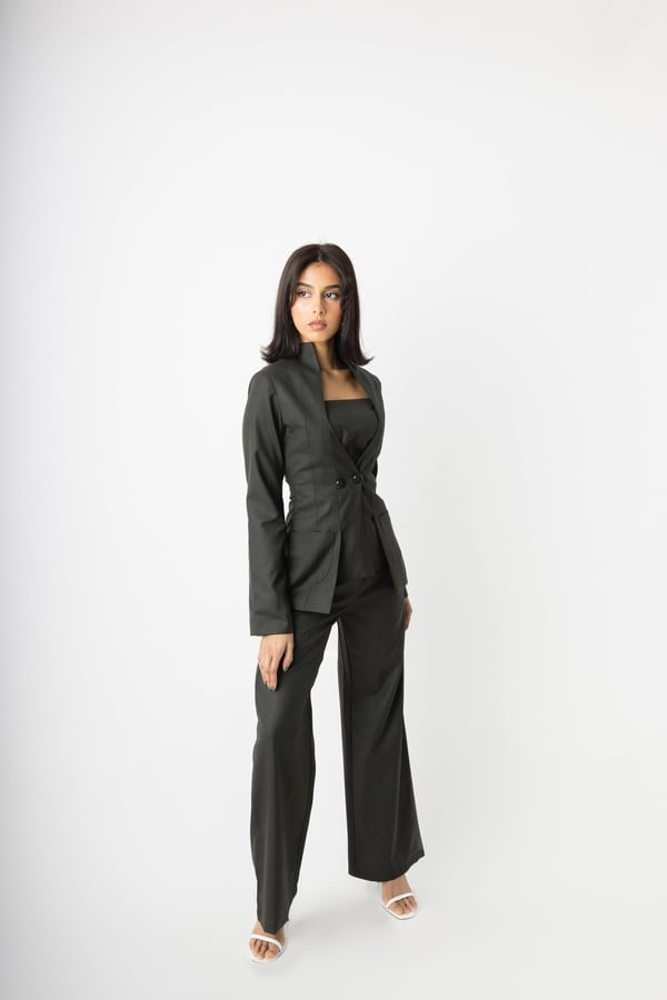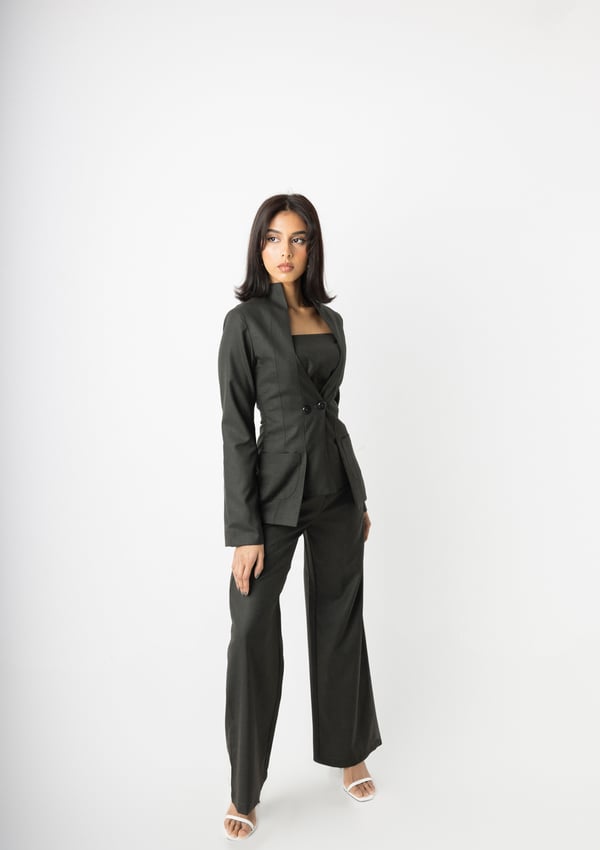 Work-fits II set is a three piece set comes with a strapless top, blazer and pants.
